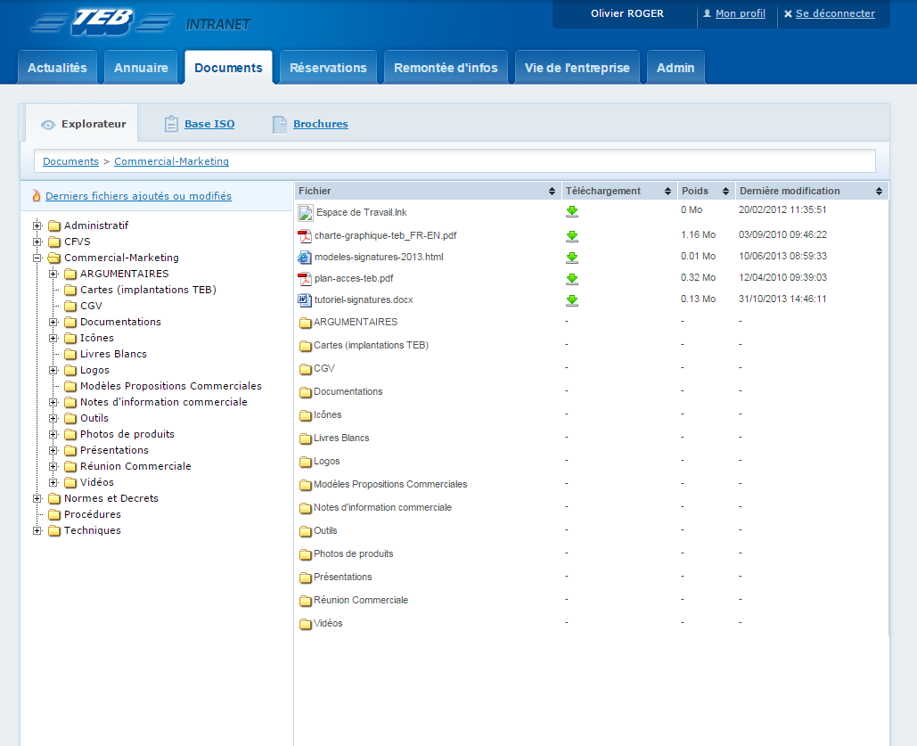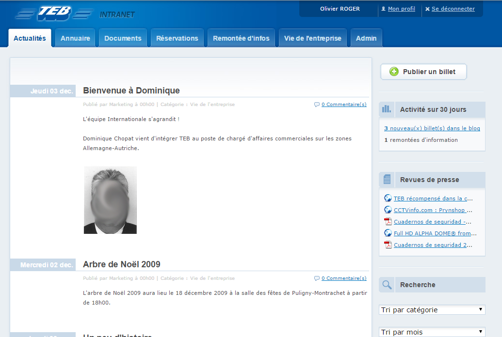 Intranet pour l'entreprise TEB afin d'améliorer la communication interne et l'accès aux ressoures communes