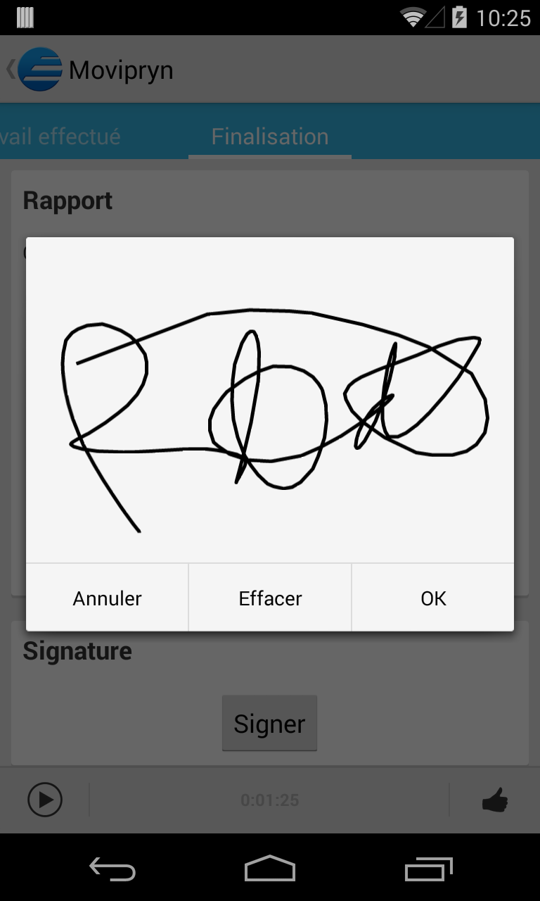 Gestion du temps de travail, des produits consommés. Signature numérique, édition de bon d'intervention ...