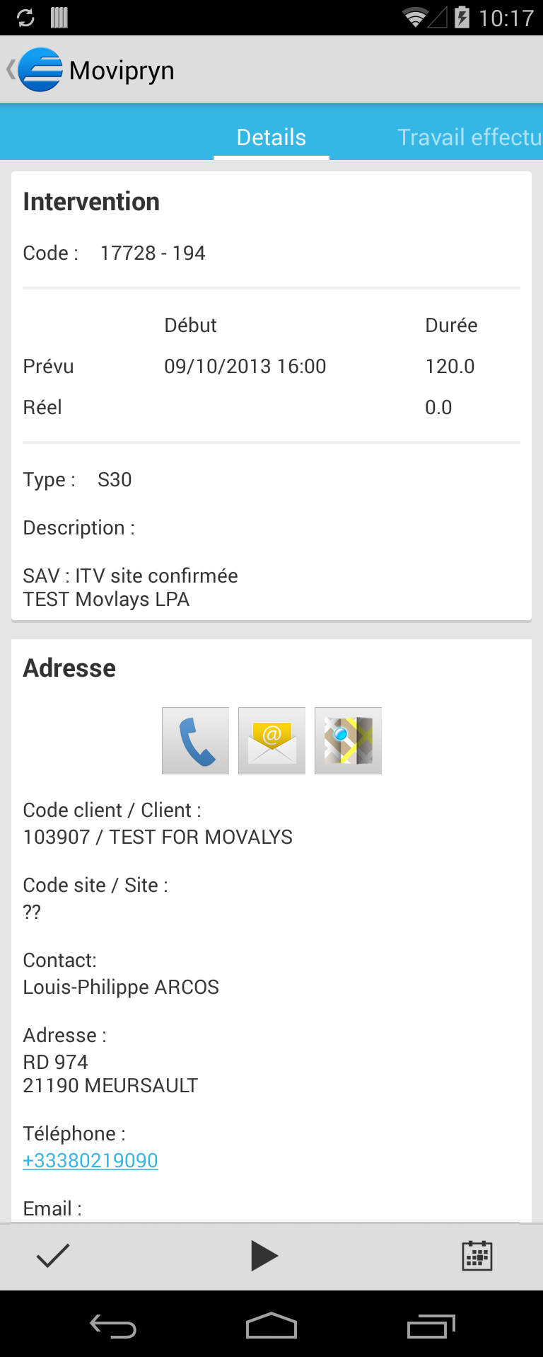 Assistant sur smartphone pour technicien. Synchronisation automatique avec CEGID.