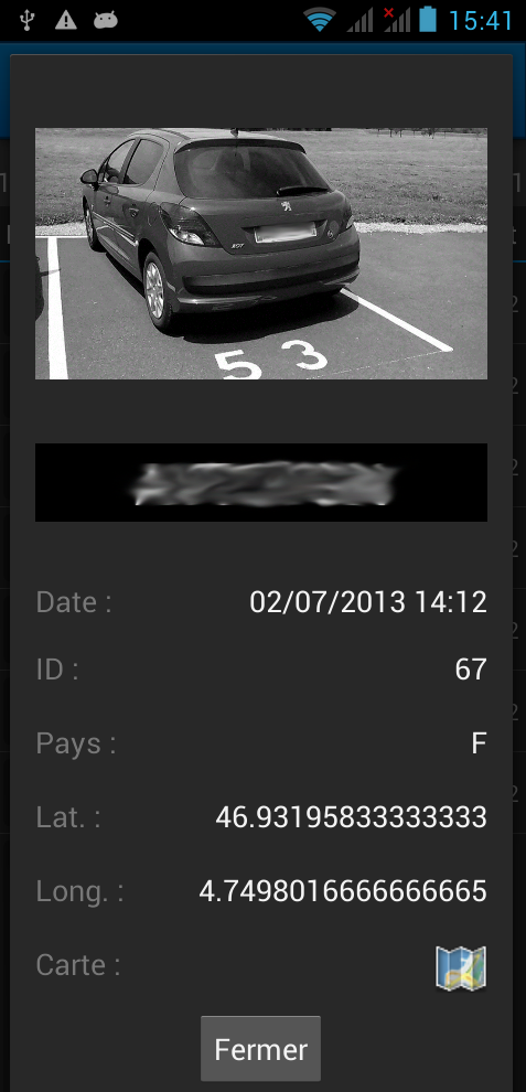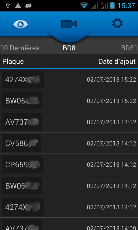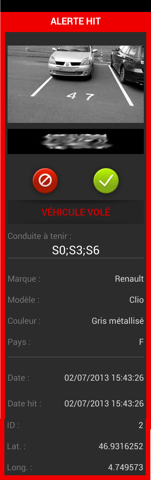 Application permettant une lecture automatisée des plaques d'immatriculation, l'enregistrement d'image et la comparaison avec des bases de véhicules volés.