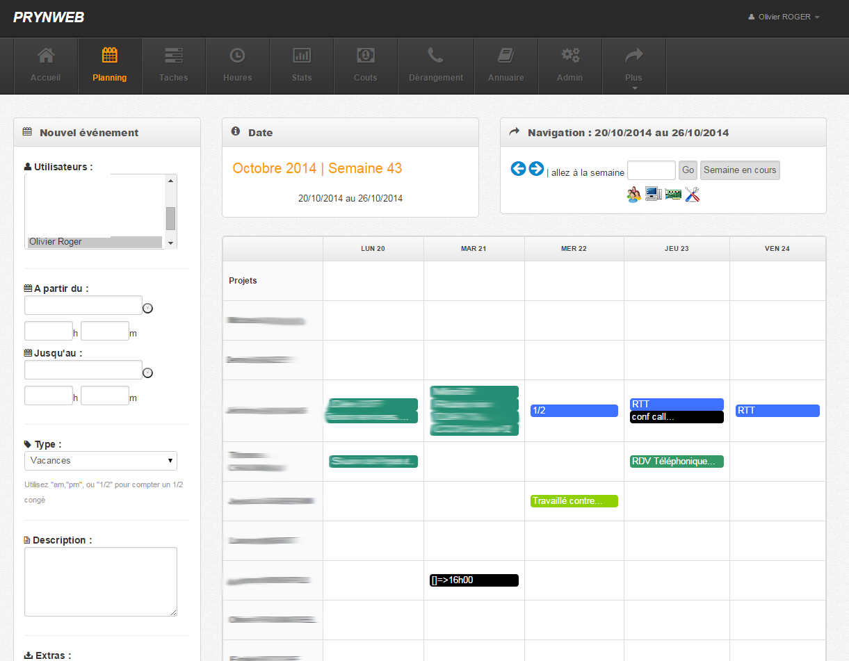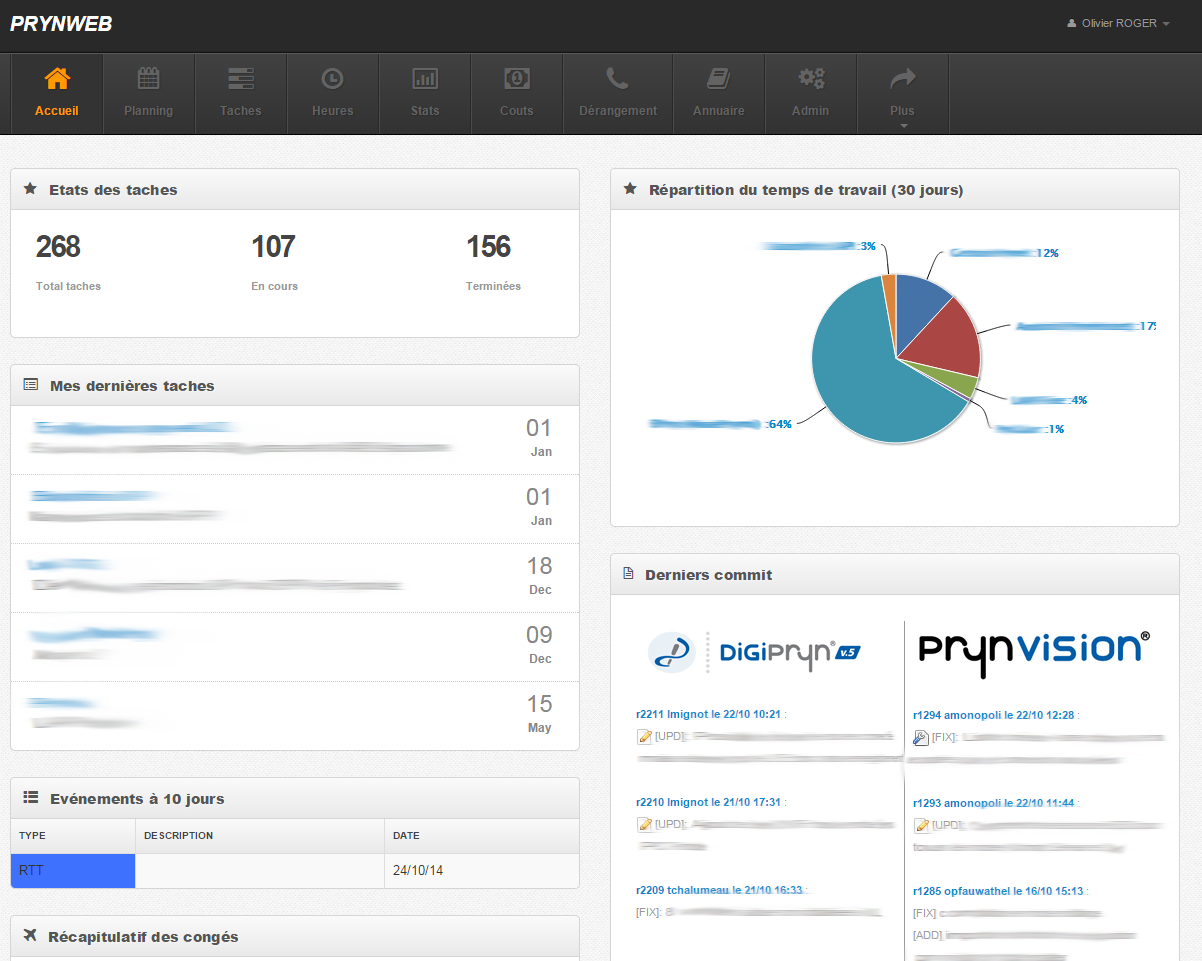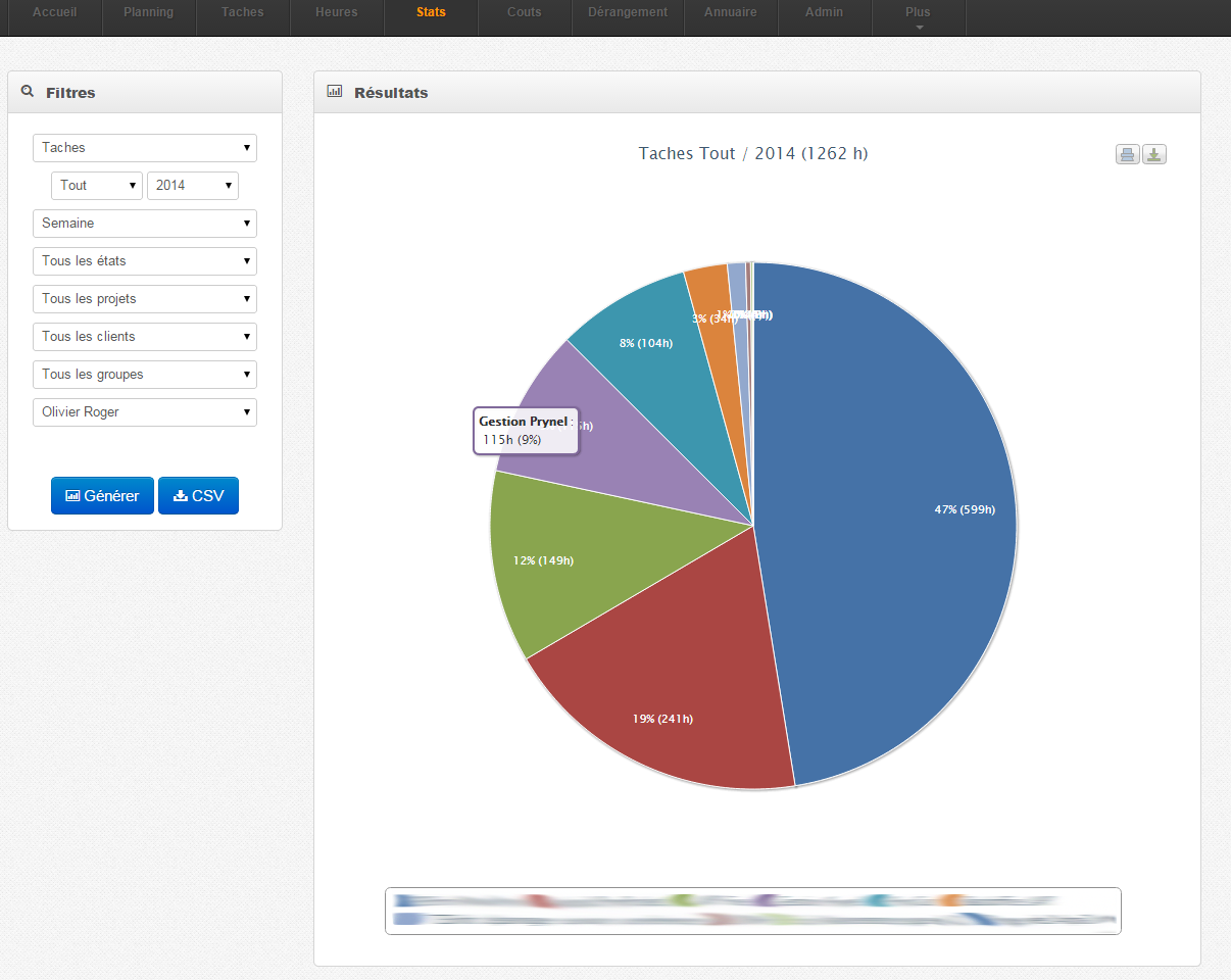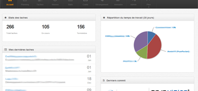 Application web permettant de gérer une équipe de développement. Planning , assignement de taches , tracking du temps de travail, statistiques, calcul des couts ...